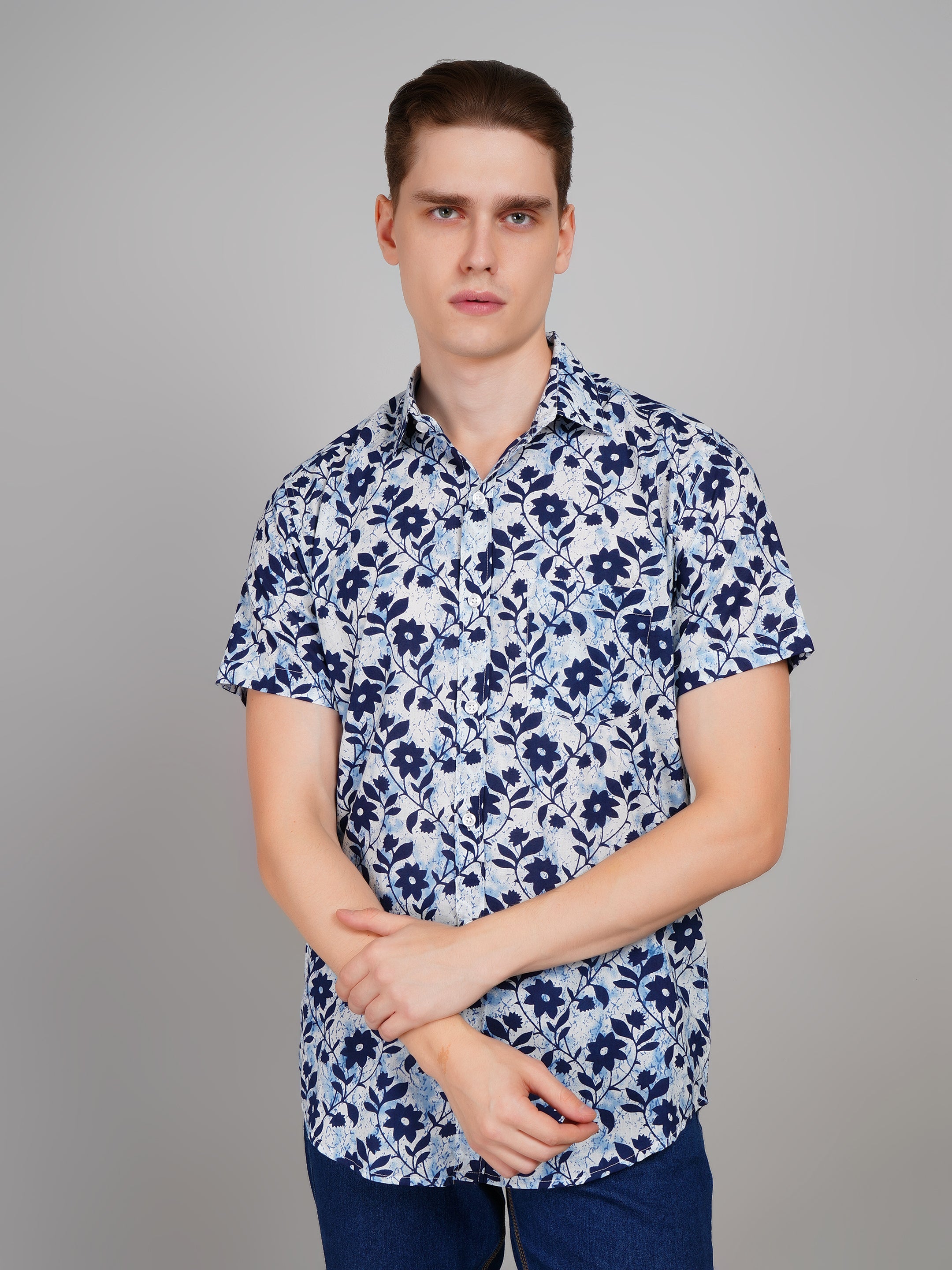 Louis Monarch's Men Regular Fit Solid Navy Blue Spread Collar Casual Half Shirt